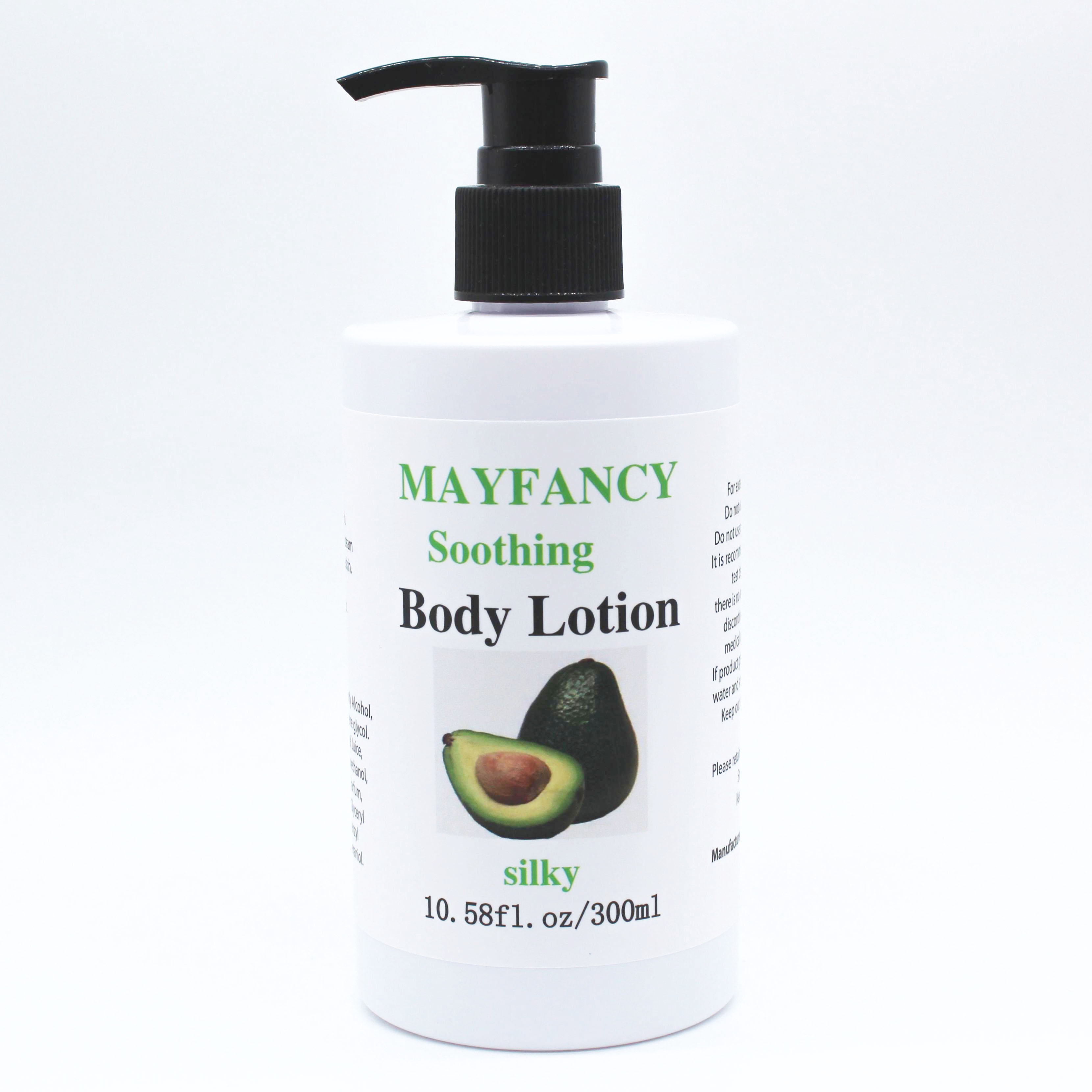 Avokado Body lotion är bra för mänsklig hud och lätt att absorberas av huden, UV-absorptionen är stark, plus rik på vitamin E och karoten, så den har en bra hudvård, solskyddsmedel och hälsovård.